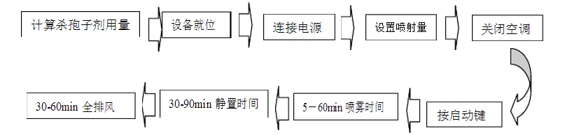 ⑸ 性價比極高,不到氣化過氧化氫設(shè)備20-30分之一的成本,達到滅菌效果 ⑹ 整個消毒過程時間短,所以相比甲醛熏蒸使停產(chǎn)時間大大縮短 滅菌流程