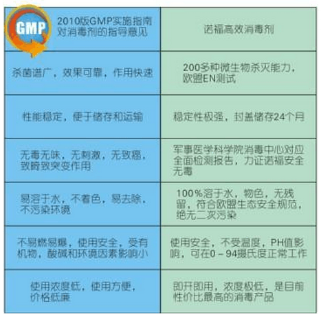 3 具備高適用性:諾福不受溫度,光照,PH值影響,這點幾乎克服了其他所有消毒產(chǎn)品的缺點,我們知道目前的消毒產(chǎn)品,無一例外的會受到PH值,溫度的影響,從而失效或者需要增加用量(用量的增加,意味著腐蝕性,濃度的增加,意味著GMP車間的易清洗程度增加)