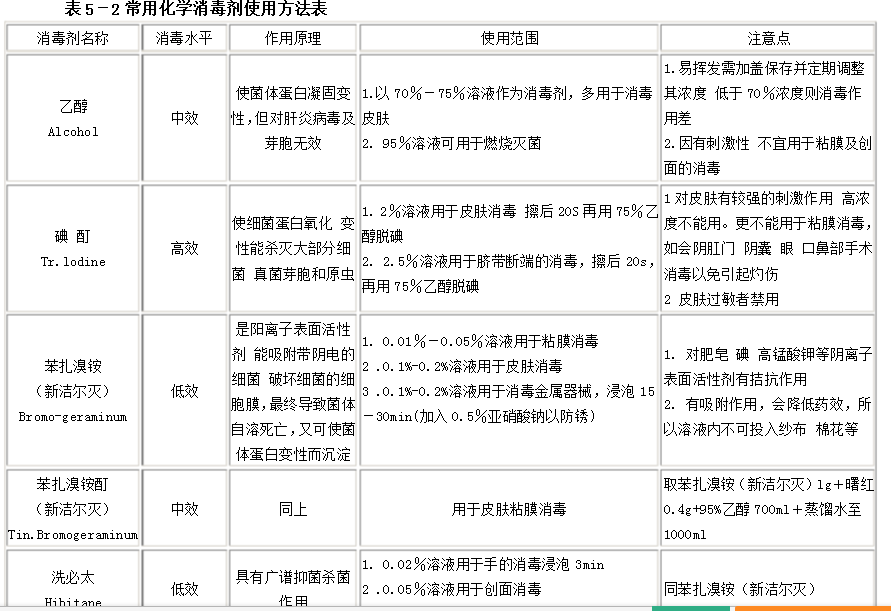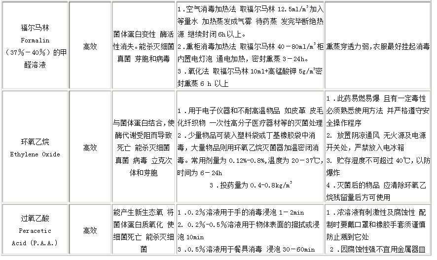 此外,尚可應(yīng)用甲醛或過(guò)氧乙酸等進(jìn)行熏蒸滅菌(詳見表5-2)。