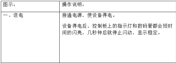 (4)每次實(shí)施作業(yè)前必須先將配電板電源開(kāi)關(guān)打開(kāi),使設(shè)備得電,等指示訊號(hào)正常后,才打開(kāi)“運(yùn)行開(kāi)關(guān)”開(kāi)始工作。