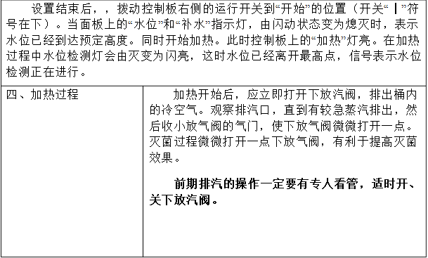 適用公司研發(fā)室的YM75不銹鋼智能型立式電熱蒸汽消毒器 三、不銹鋼智能型立式電熱蒸汽消毒器(YM75)操作規(guī)程