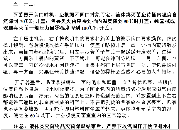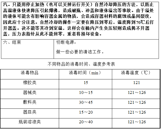 滅菌溫度與保溫時(shí)間參數(shù)的設(shè)定,直接影響滅菌效果,所以滅菌溫度和保溫時(shí)間的實(shí)際使用參數(shù),應(yīng)得到滅菌效果的確認(rèn)后才能使用。 四、注意事項(xiàng)